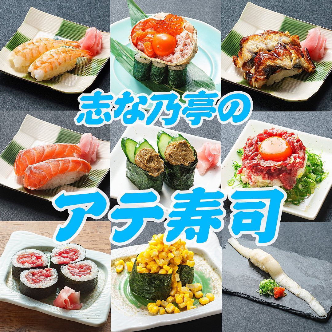 お酒のアテになる「#アテ寿司 」発売!鮮魚がてんこ盛りの創作寿司から定番のにぎりや軍艦寿司まで29種類のお寿司を発売!・北海こぼれ寿司980円(カニ・いくら・サーモンがてんこ盛り!)・マグロにぎり2カン330円・隠岐の島白バイ貝にぎり2カン330円・穴子一本ロング寿司330円・ねぎトロ軍艦2カン330円などなどお酒のアテにも晩ご飯にもいけます今日は#志な乃亭 のお寿司でぐい~っと飲んでやってください♪==============#志な乃亭野田阪神店 は16:00~24:00(LO23:30)営業中#居酒屋野田阪神志な乃亭 #野田阪神グルメ #福島区グルメ #福島寿司 #海鮮居酒屋 #刺身 #ぎょうてん盛り #個室 #掘りごたつ席