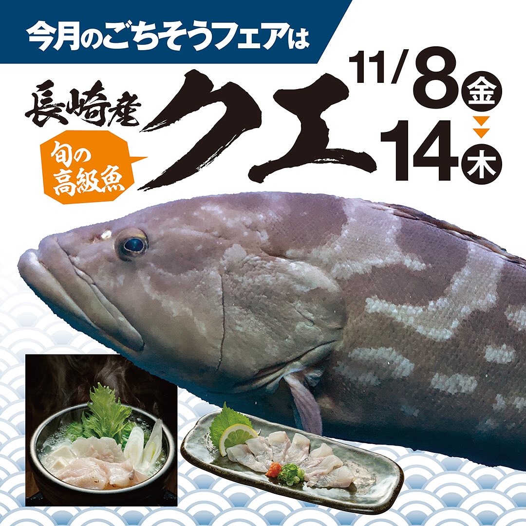 【11/8(金)~14(木)限定】長崎産クエフェア本日開催!/志な乃亭野田阪神店クエが美味しくなる季節がやってきましたクエは天然物ならキロ1万円を超える高級魚志な乃亭で期間限定で味わえます!志な乃亭のクエは陸上養殖で育てているため身に弾力があり「イカっている」食感がたまらないですよ傷みやすいクエですが養殖だからできる「生食(なましょく)」をぜひお試しくださいフェアのラインナップはこちらクエ薄造り980円クエにぎり寿司2カン480円クエちり鍋1280円クエ炭火焼き串1本450円クエしそ天ぷら串1本450円クエのお吸い物380円クエに合うおすすめドリンクは「地酒」当店の自慢のお酒でしっぽりとお楽しみ下さい@shinanoteinodahanshin#志な乃亭野田阪神 #居酒屋 #野田阪神居酒屋 #野田阪神レストラン #産直鮮魚と地鶏#宴会 #大人数貸し切り #クエ薄造り #クエちり鍋