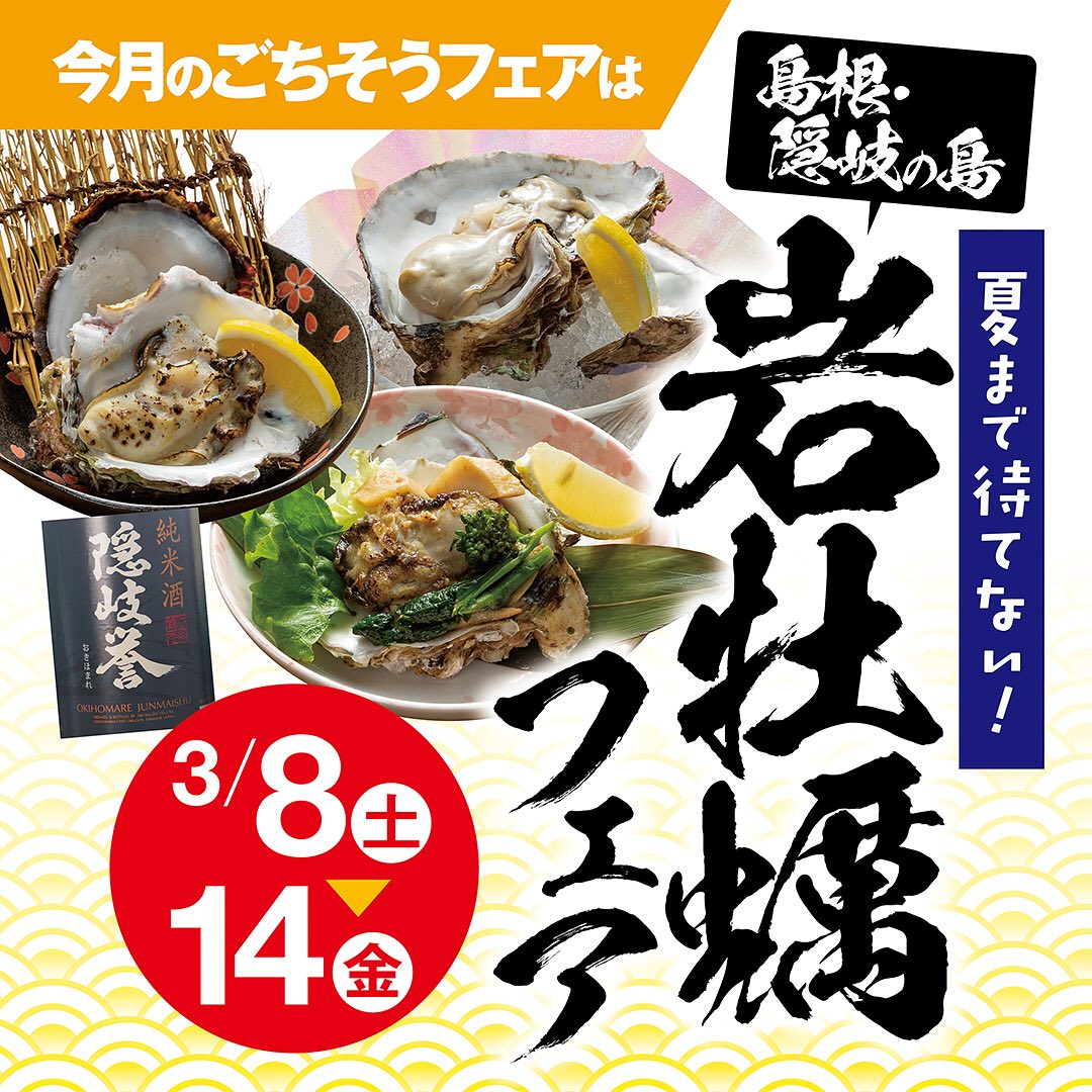 【噂の岩牡蠣が入荷!】隠岐の岩牡蠣フェア★志な乃亭野田阪神店3/8~14