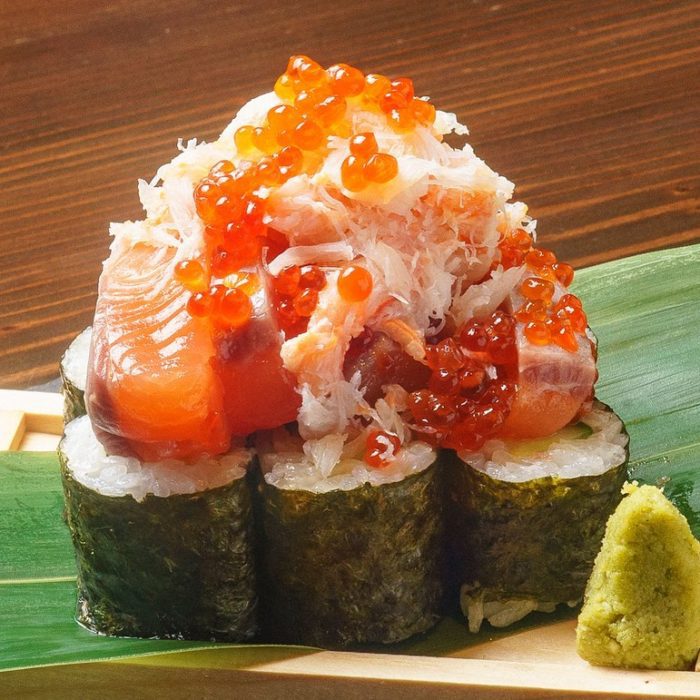 いくら、カニ、サーモンがてんこ盛り🦀新メニュー登場!!★北海こぼれ寿司900円(税込)北の海の幸があれもこれもてんこ盛り!もうこぼれちゃってますがんばって食べち…