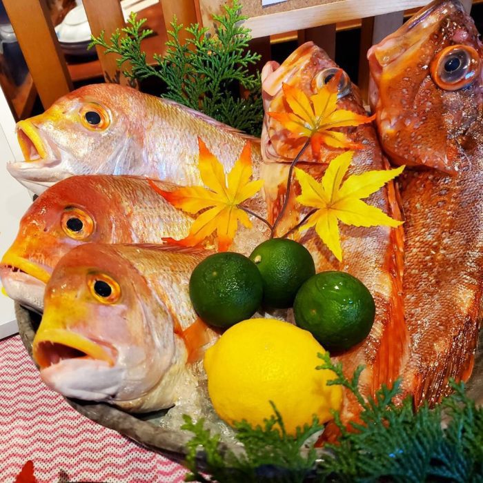 来た〜️お魚満載️境港から旬のお魚到着カサゴ、キントキ、のどぐろなどなど今日のイチオシはレンコ鯛姿造り1280円その場でさばいてお出しします♫カマはアラ汁にしま…