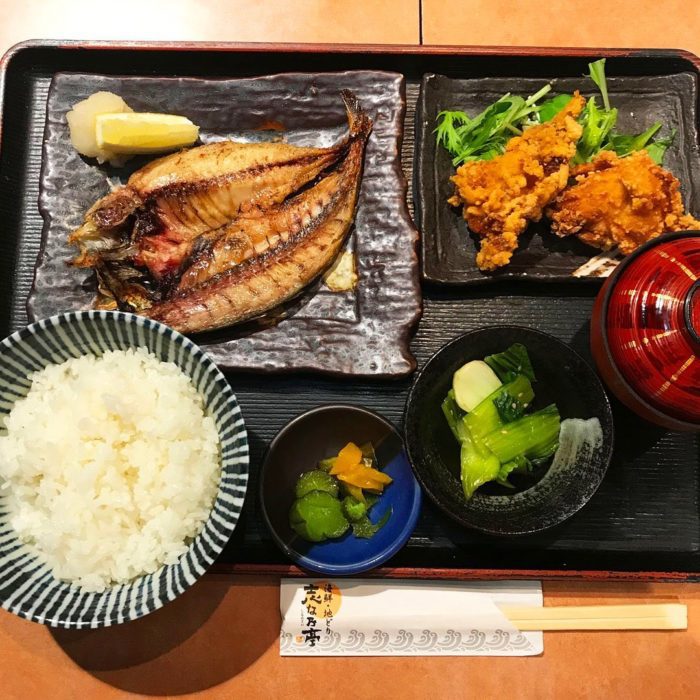 日替わり定食でご機嫌♫アジ開きとから揚げ🐓です数日前の#志な乃亭野田阪神店 の日替わり定食しごく真っ当な海鮮居酒屋のランチいやもうこれが食べたかった🥰今時の日本…