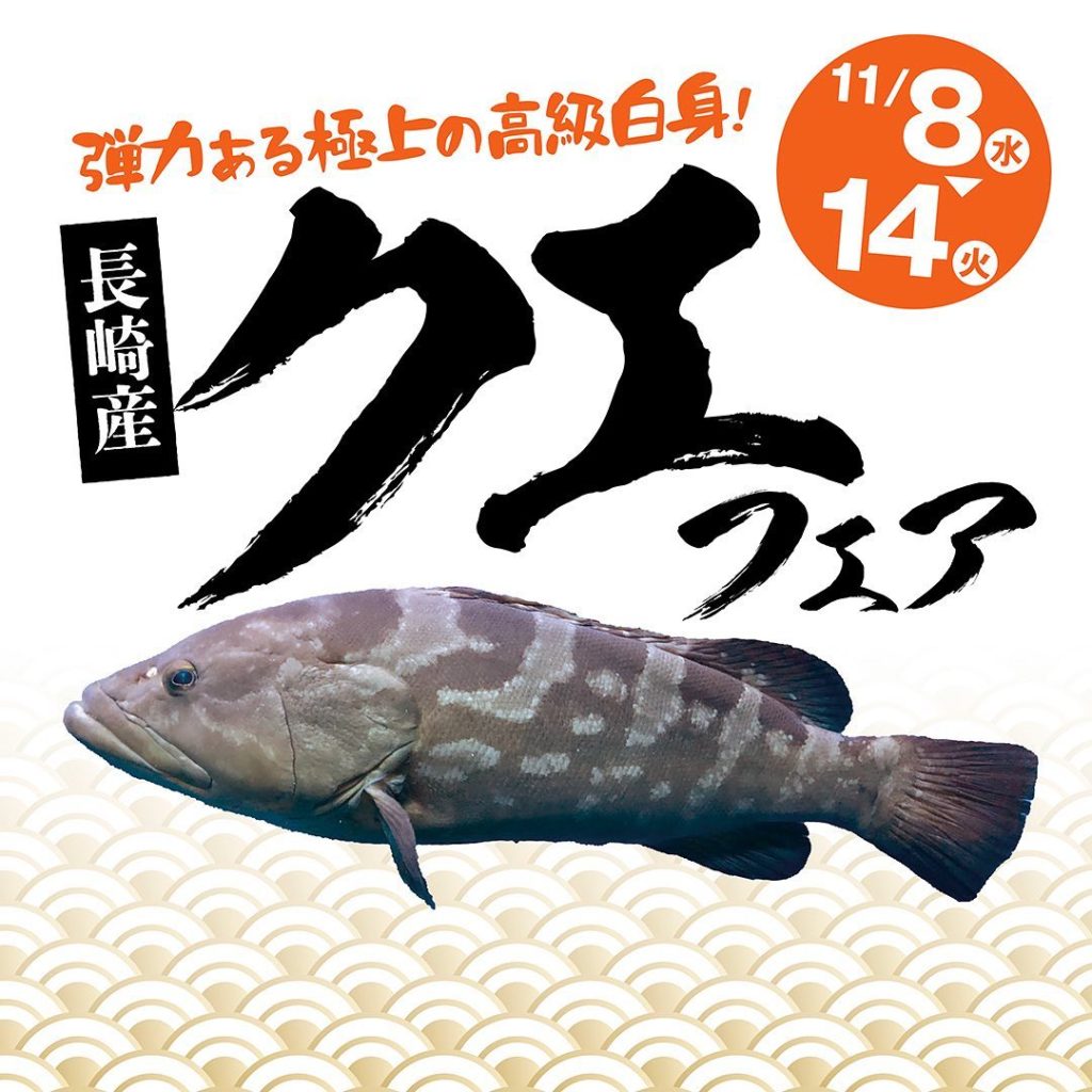 長崎産クエフェア11/8~14★志な乃亭 クエは成魚は1mを超える大きな魚で、天然物ならキロ1万円を超える高級魚ただし身に含まれる水分が多く傷みやすいため、生食…