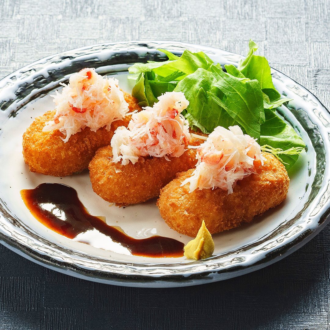濃厚カニクリームコロッケにカニほぐし身をトッピング♪