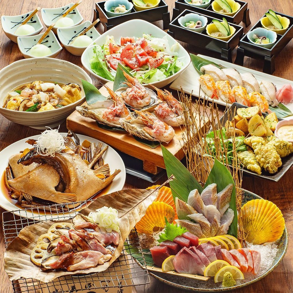 秋冬の#飲み放題コース 登場! 産直地魚造り盛りと地鶏朴葉焼き4000円コース全10品 ・季節の先付2種・店長おすすめ産直鮮魚入り お造り4種盛り・フレッシュト…