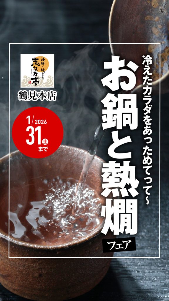 【お鍋と熱燗フェア★1/31まで】志な乃亭 鶴見本店【お鍋と熱燗フェア★1/31まで】志な乃亭 鶴見本店 鶴見緑地公園近くの海鮮と地鶏料理の居酒屋 志な乃亭 鶴見本店ではただいま 【お鍋と熱燗フェア】を開催中! …