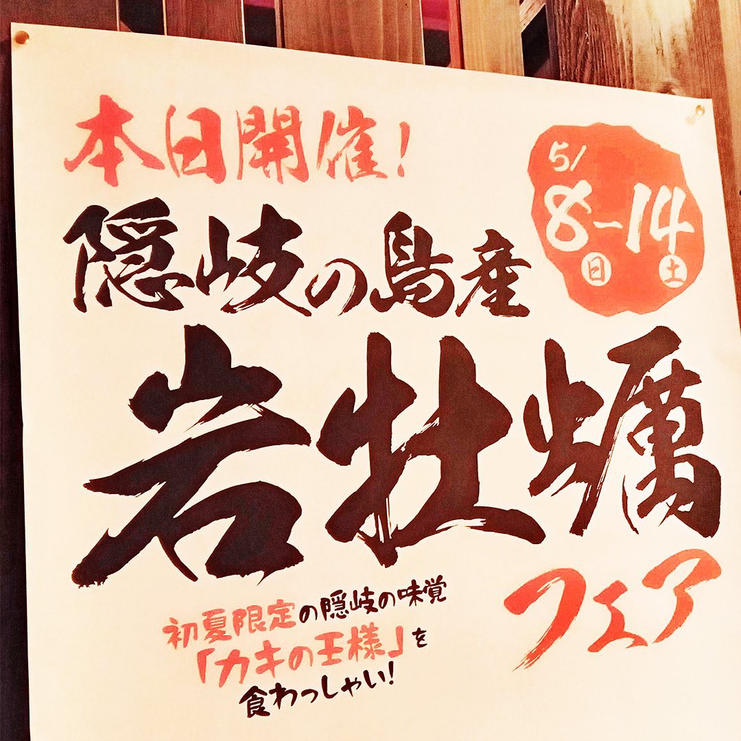 隠岐の島岩牡蠣🦪フェア明日5月8日~14日#岩牡蠣 は、冬が旬の真牡蠣とは別種で今が旬水深5m前後の水のきれいな浅瀬に棲みぐんぐん大きくなります島根・隠岐の島の岩牡蠣はとにかくでかい!殻もでかけりゃ、中身もでかい!なんせ300gサイズですぷるんぷるんの身は一口では食べきれない大きさ食べ応え満点初夏🌳の贅沢フェアは明日8日から1週間限定!#志な乃亭鶴見本店 で夏のご馳走、楽しんでください♪◆隠岐の島岩牡蠣 各880円・生岩牡蠣★やっぱ生が一番♪・焼き岩牡蠣★生が苦手な方は火を通して・岩牡蠣バター醤油焼き★バターのコクで旨さ倍増!・贅沢岩牡蠣フライ★タルタルソースをたっぷりかけて・特大生岩牡蠣1280円★せっかく食べるならこっち? 牡蠣好きさんにおススメ#居酒屋鶴見志な乃亭 #鶴見区グルメ #鶴見区ランチ #鶴見緑地 #隠岐の島 #岩牡蠣でかい #海鮮居酒屋 #座敷 #個室 #駐車場あり