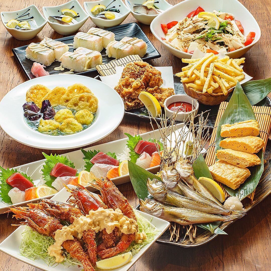 有頭エビフライとハタハタ一夜干し3500円コース全9品