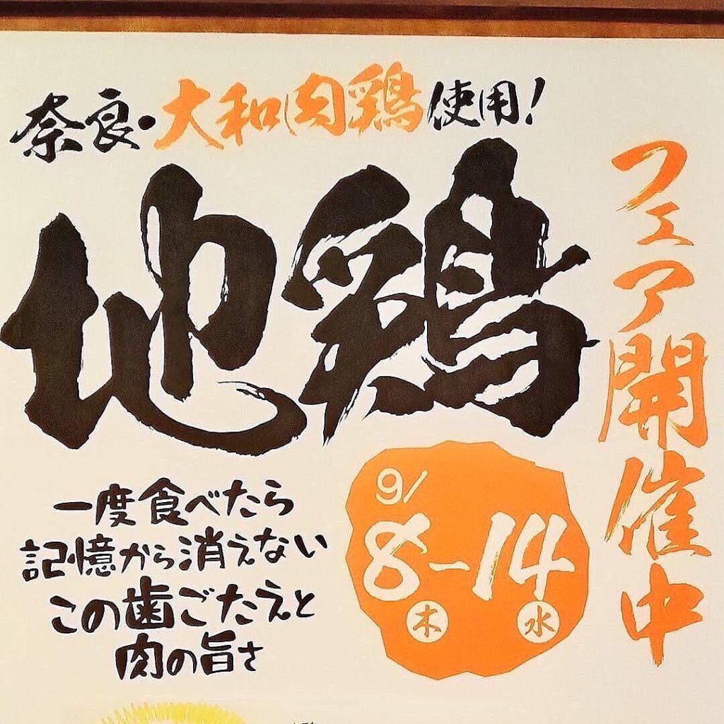 #地鶏フェア 開催9月8日~14日 奈良・飛鳥の「#大和肉鶏 」を使った地鶏フェアを1週間開催しています♪ #志な乃亭 自慢のこの地鶏肉質がしっかりしていて歯ご…