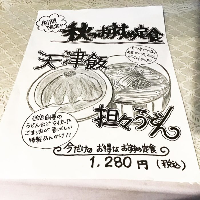 …本日より秋限定の定食がもう1つ増えました."天津飯"と"坦々うどん"の定食です!.天津飯は、当店自慢のうどん出汁を…