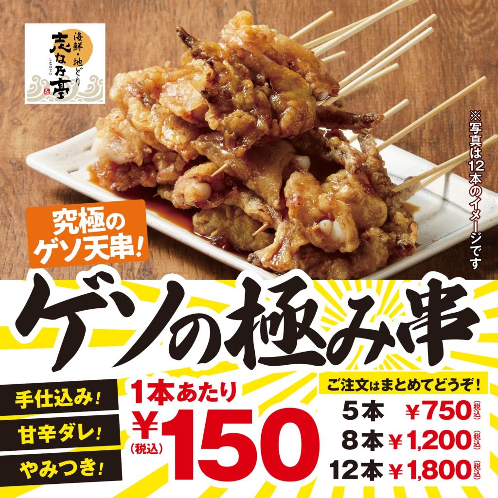 【鶴見×ゲソ天】ゲソの極み串1本150円もう食べた!?志な乃亭鶴見本店