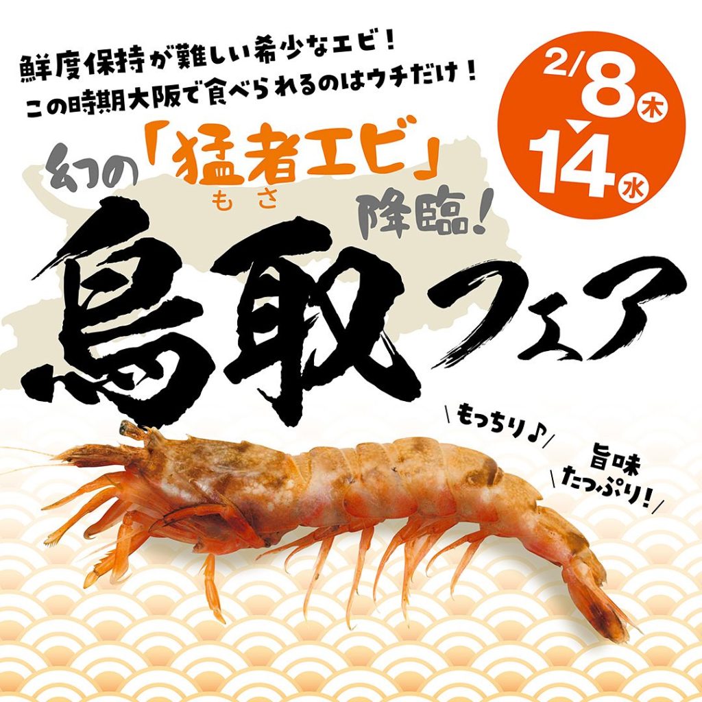 【幻のエビ×鶴見】猛者エビ降臨!鳥取フェア2/8~14志な乃亭 2月のご馳走フェアは「鳥取県」なかでも幻のエビ🦐と呼ばれる「猛者エビ(もさえび)」は大阪ではめっ…