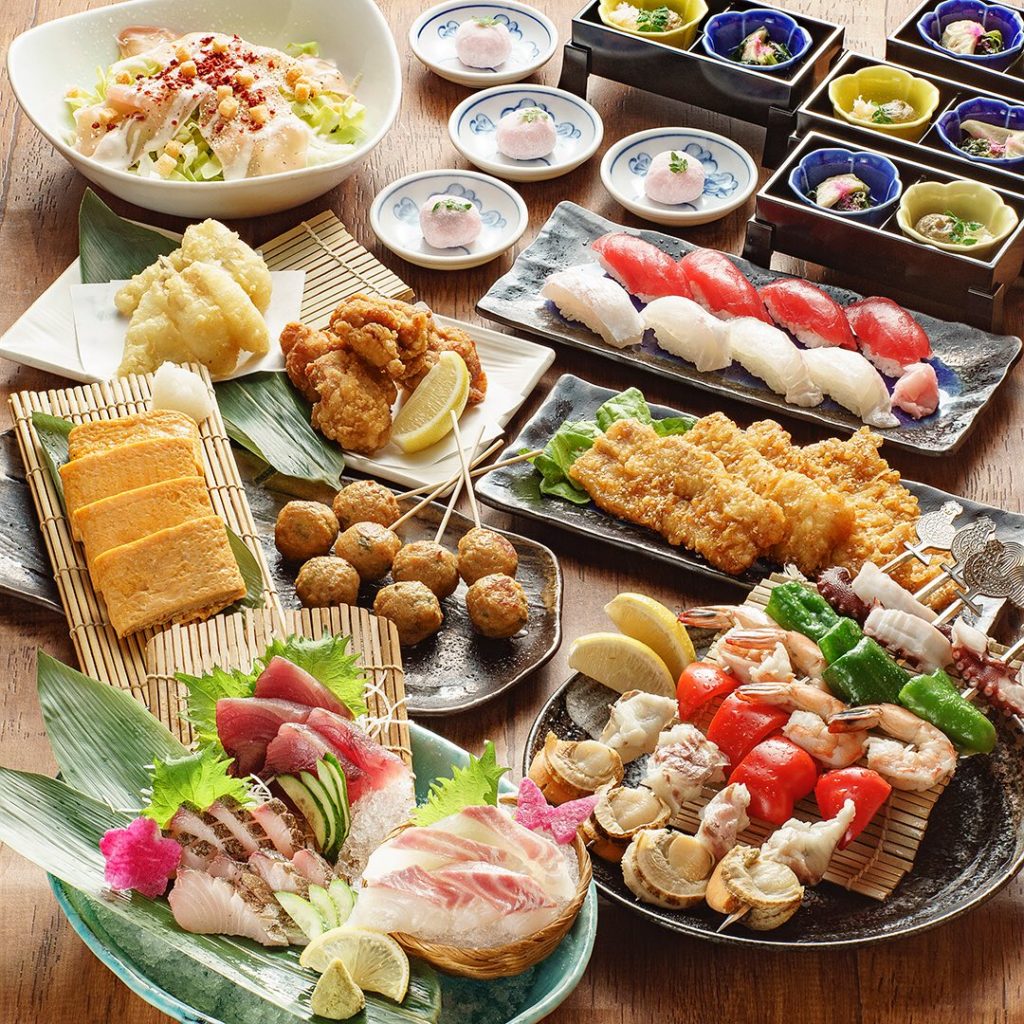 【鶴見で歓送迎会】幹事さん必見!志な乃亭の飲み放題コース この春のイチオシコースはこちら 歓送迎会・飲み放題付き海鮮もりもり串炭火焼きと初カツオお造り4000円…